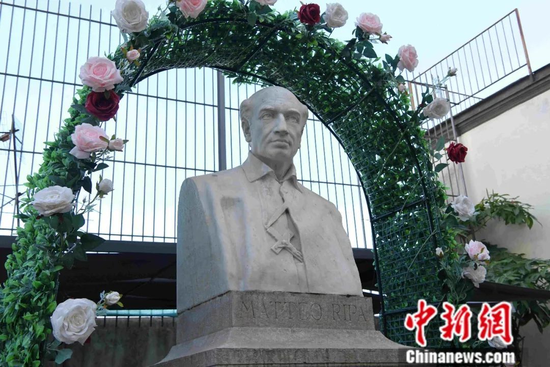 在意大利那不勒斯“中国学院”旧址的马国贤雕像。图/中新网