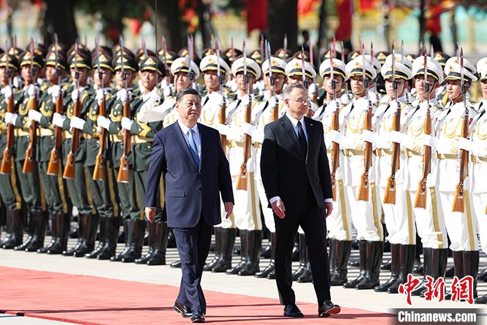 6月24日下午,中国国家主席习近平在北京人民大会堂同来华进行国事访问的波兰总统杜达举行会谈。会谈前,习近平在人民大会堂东门外广场为杜达举行欢迎仪式。中新社记者盛佳鹏摄