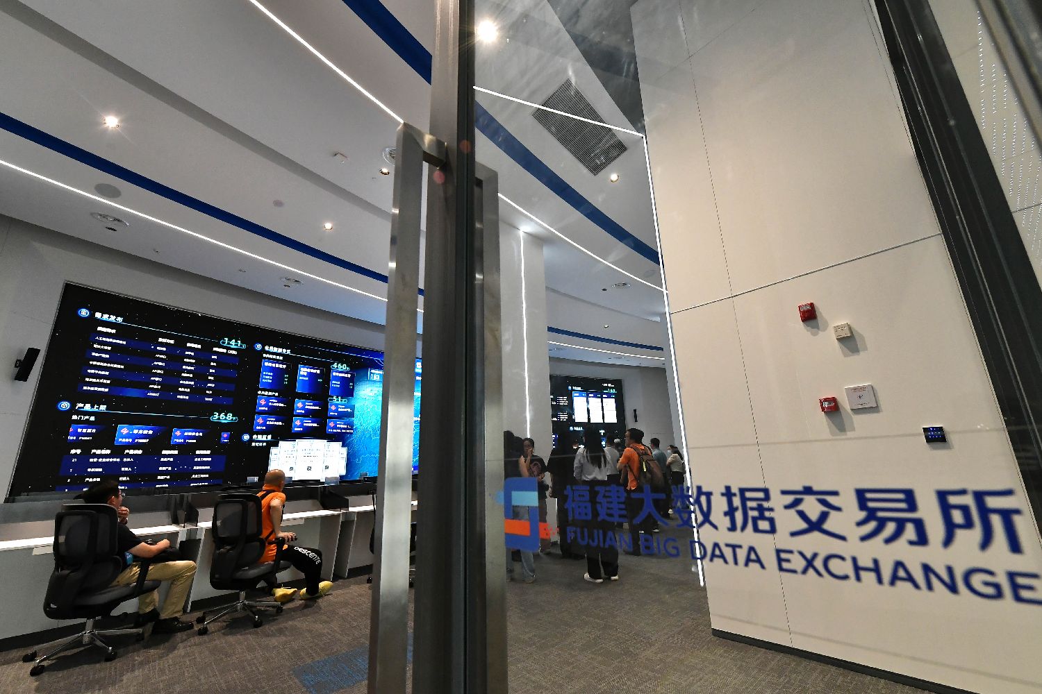 2023年6月19日,参观者在福州新区东湖数字小镇参观福建大数据交易所。图/中新社