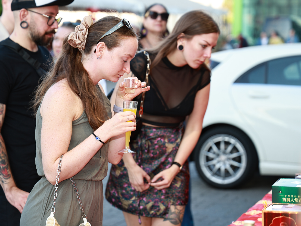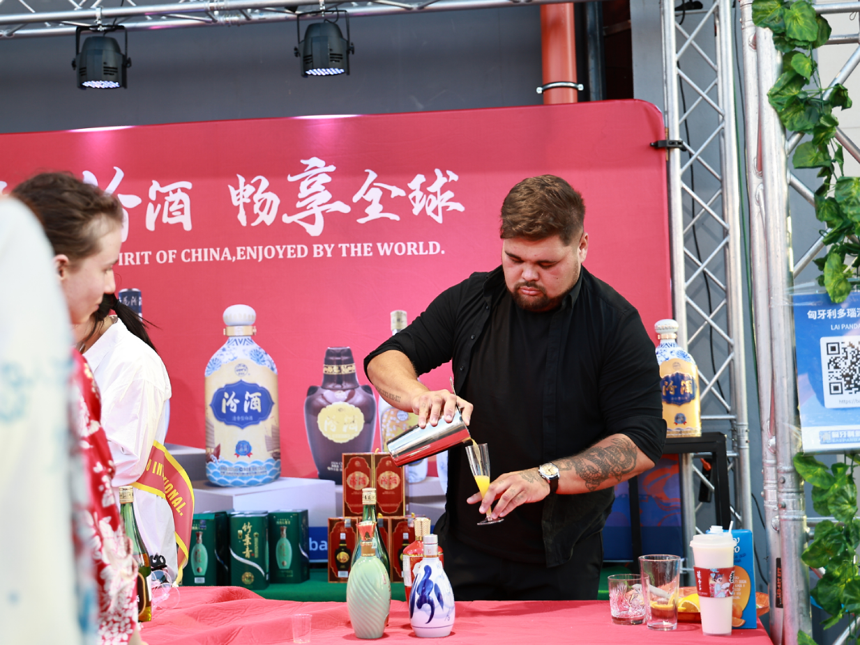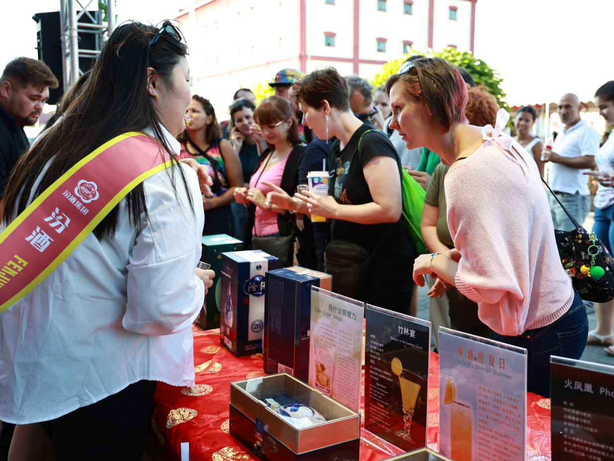 作为开国国宴用酒中国“四大名酒”之一山西汾酒携竹叶青酒于8月3-4日两天在唐人街夜市大排档举行“汾酒陪你过夏天”鸡尾酒品尝活动,由伦敦调酒学院毕业的专业调酒师现场调制。(摄影:布达佩斯安吉啦摄影馆 戴立辉)