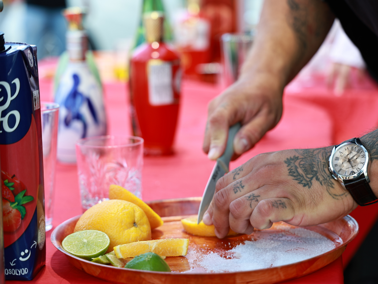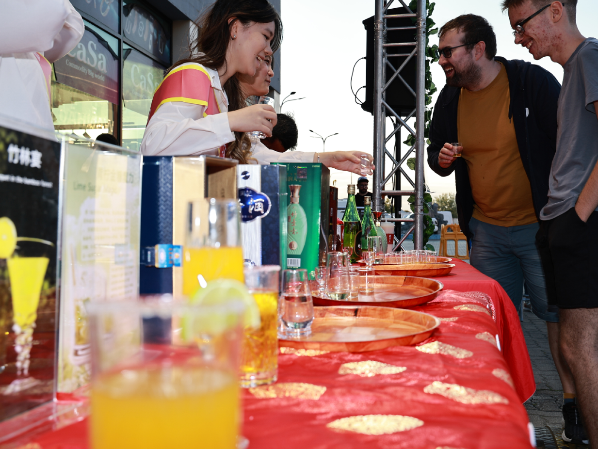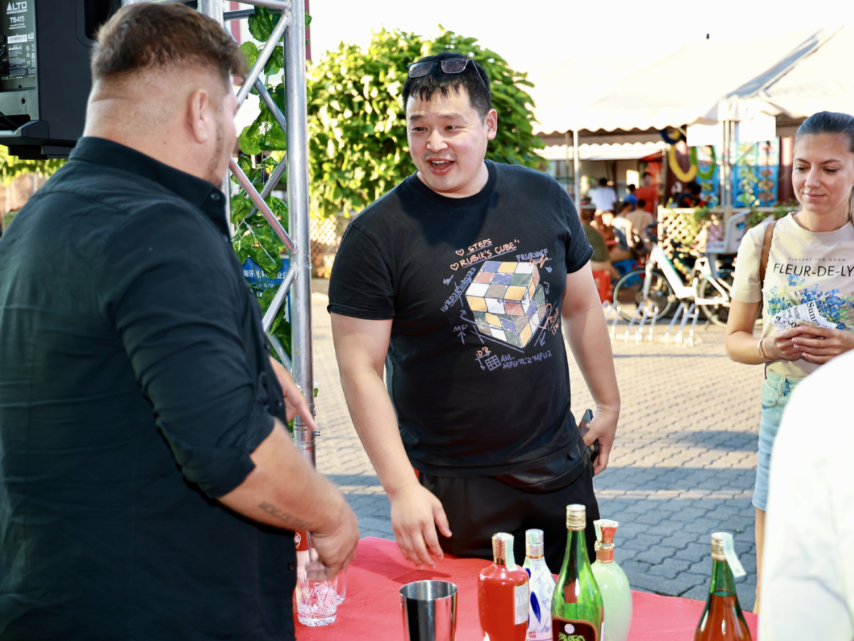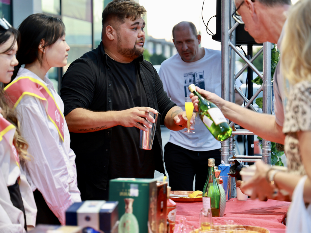 作为开国国宴用酒中国“四大名酒”之一山西汾酒携竹叶青酒于8月3-4日两天在唐人街夜市大排档举行“汾酒陪你过夏天”鸡尾酒品尝活动,由伦敦调酒学院毕业的专业调酒师现场调制。(摄影:布达佩斯安吉啦摄影馆 戴立辉)