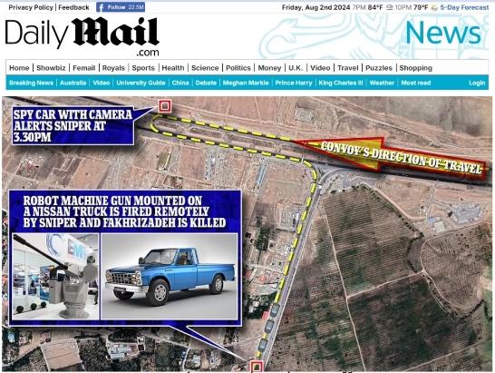刺杀法赫里扎德行动示意图。图/英《每日邮报》网站截图