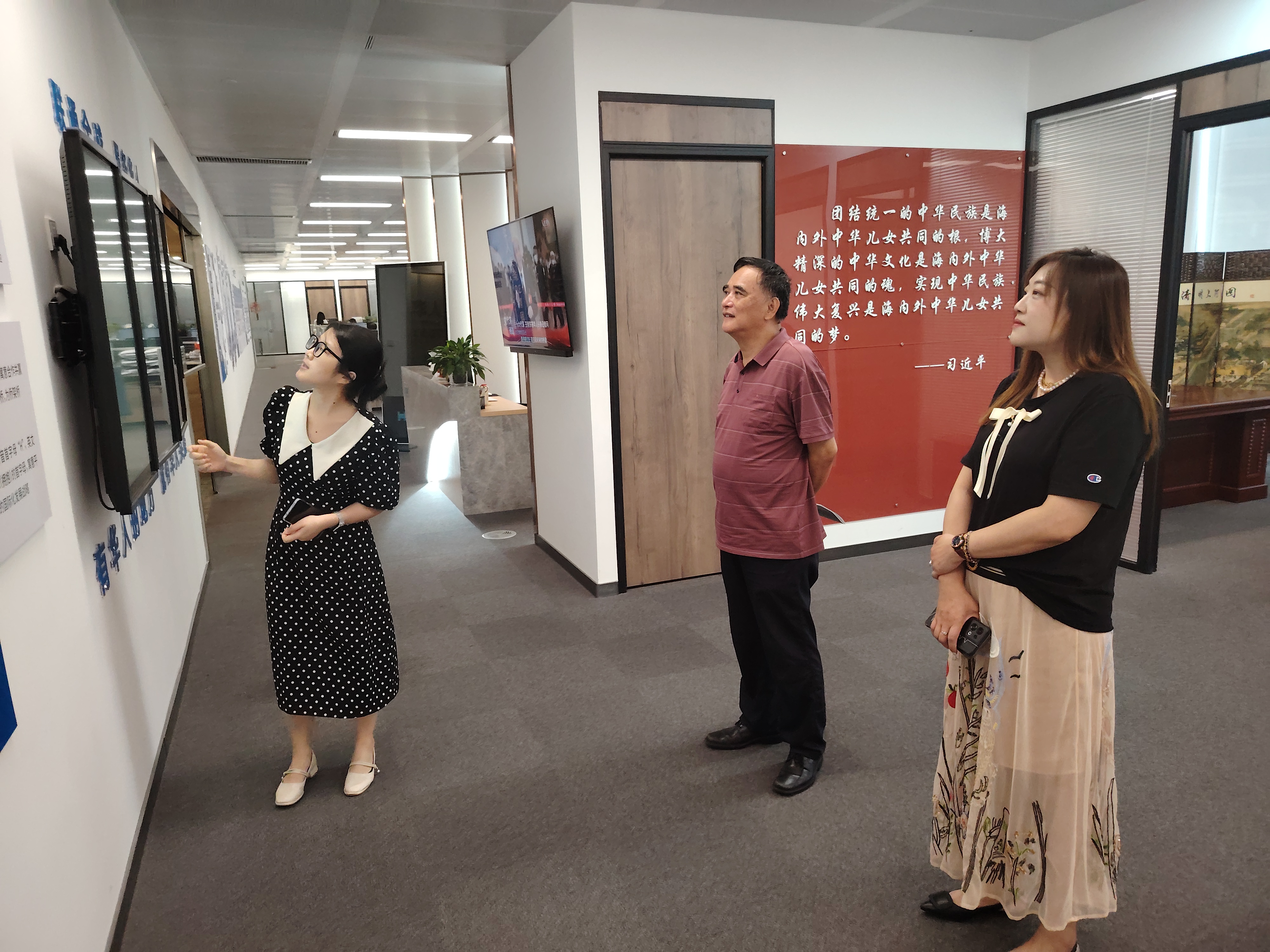 欧洲论坛报社社长刘文建(右2)等参观"华人头条"6大模块平台。