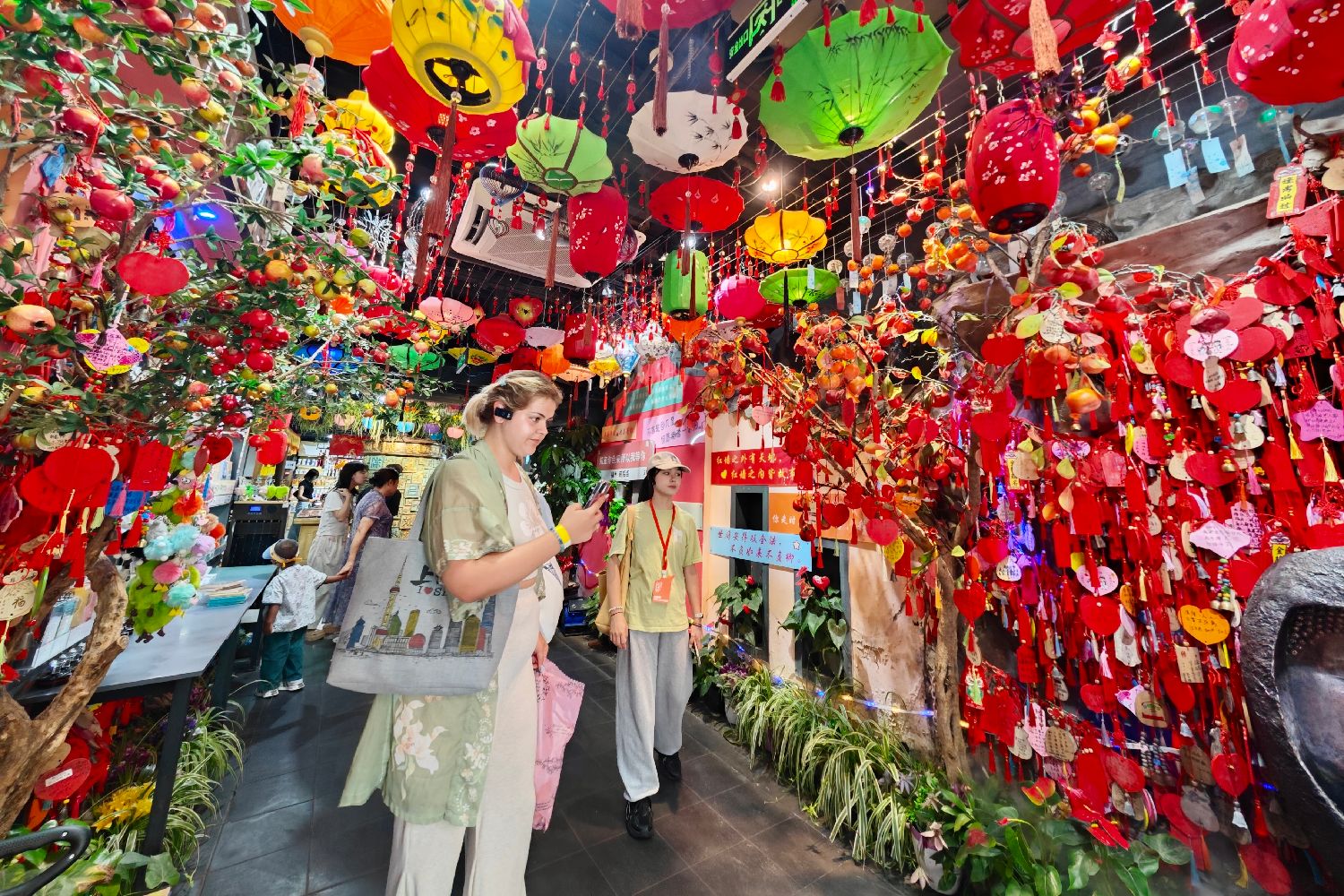 8月28日,福建福州,“汉语桥”参赛外国大学生在三坊七巷参观工艺品展馆。日前,第二十三届“汉语桥”世界大学生中文比赛全球决赛启动仪式在福建南平举行。本次比赛包含赛事比拼和文化体验,吸引来自全球130个国家和地区的147名选手参加。图/本文图片均来源于中新社