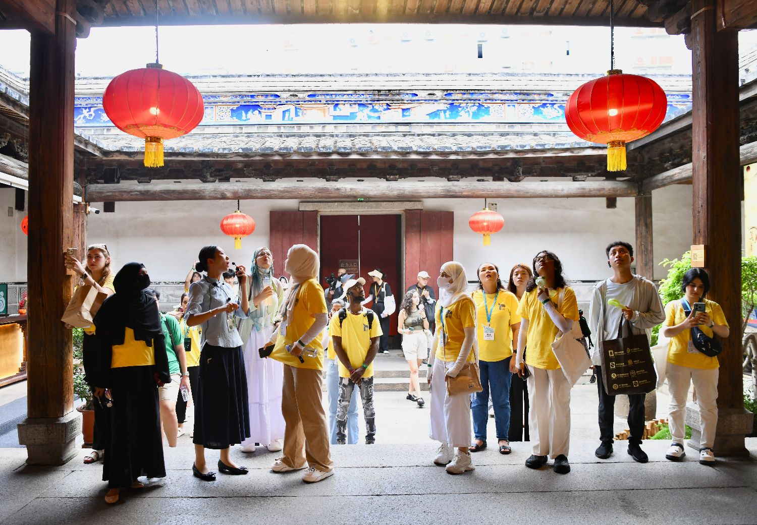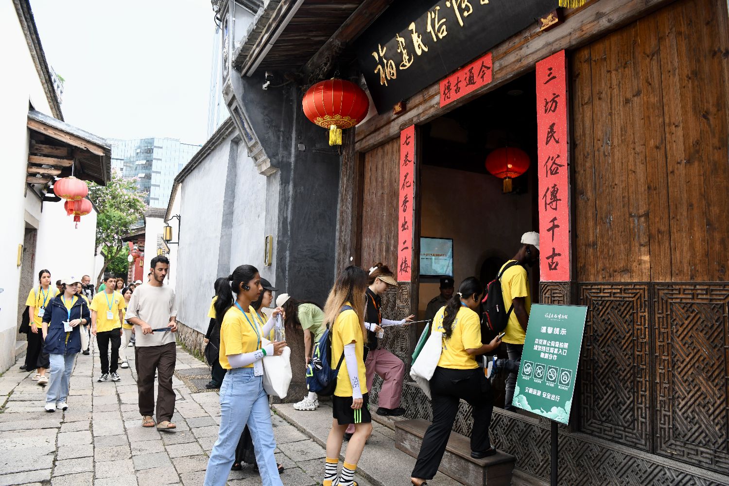 “汉语桥”参赛外国大学生在三坊七巷参观福建民俗博物馆。