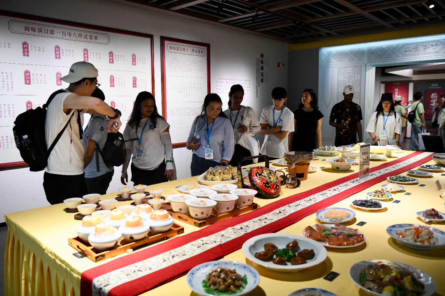 “汉语桥”参赛外国大学生参观闽味满汉全席菜肴模型。
