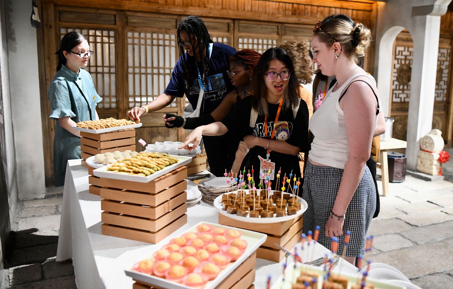 “汉语桥”参赛外国大学生品尝福州小吃。