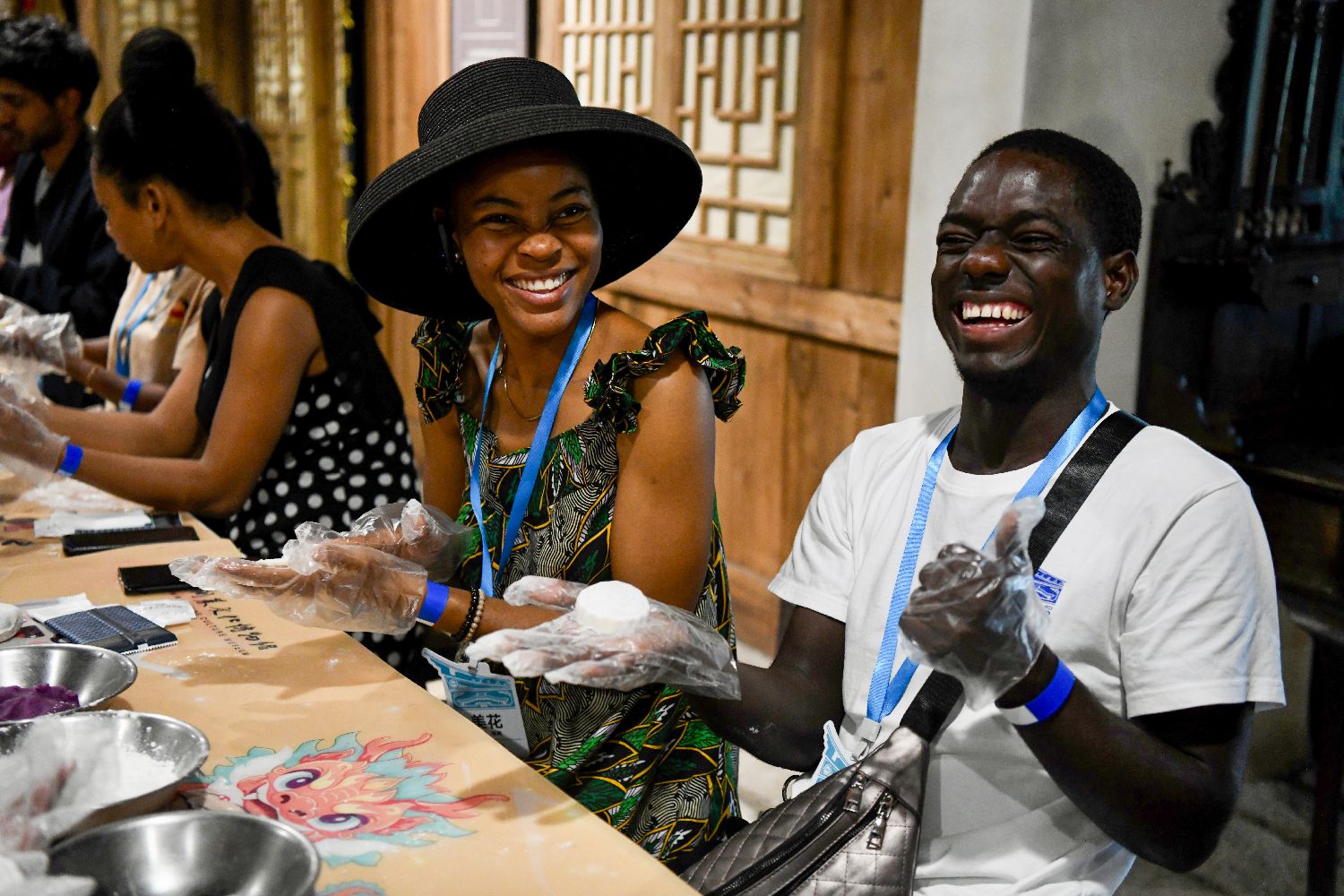 “汉语桥”参赛外国大学生体验制作月饼。