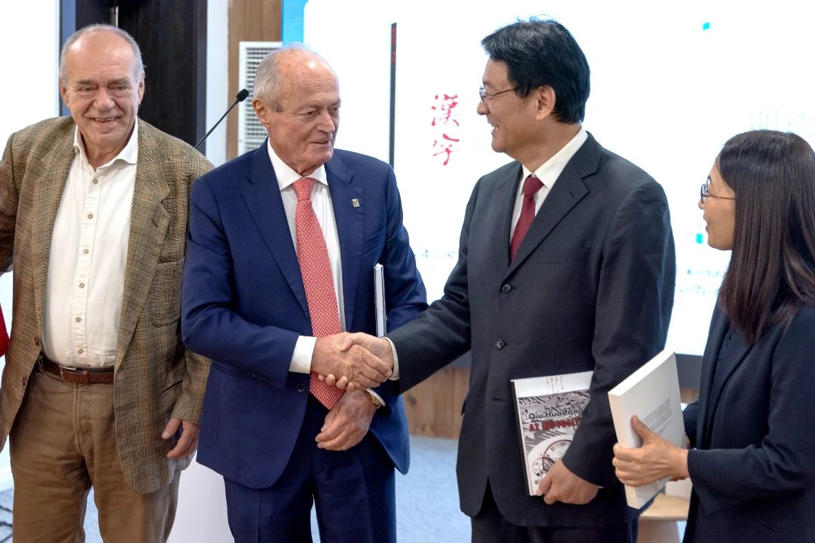 刘捷总编辑与科奇什、海尔奈、余艾丽卡共同为《中华思想文化术语(第五辑)》《汉字》和《时间的囚徒》匈牙利语版新书揭幕。