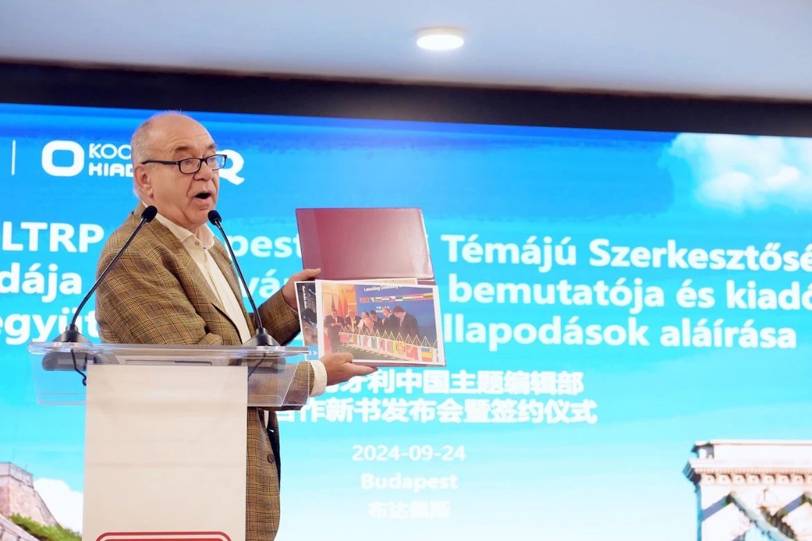 刘捷总编辑在致辞中回顾了外研社与匈牙利合作的发展历程。从2018年在布达佩斯设立中国主题编辑部至今,凭借本土化运营优势,外研社已与多家匈牙利出版机构建立紧密合作关系,成功推动20余种中国图书在匈牙利翻译出版。刘捷表示,今日的新书首发与签约仪式,标志着中匈出版合作持续稳健,并将进一步拓展领域、扩大规模,这既是双方共同努力的成果,也是中匈文化交流的又一重要里程碑。