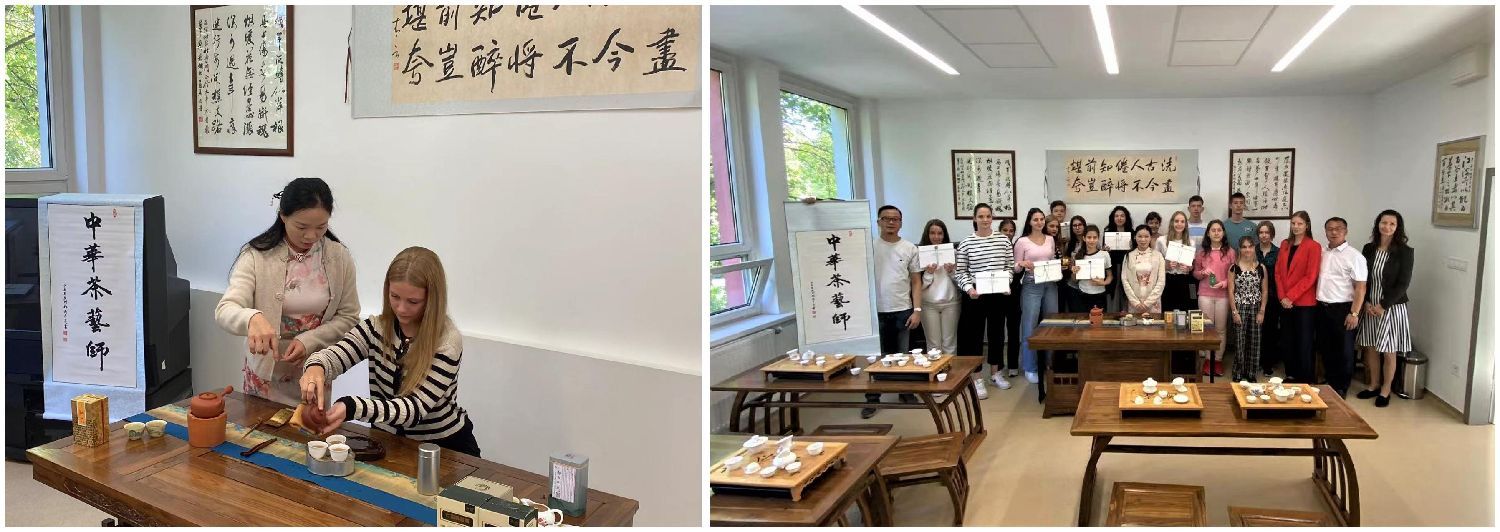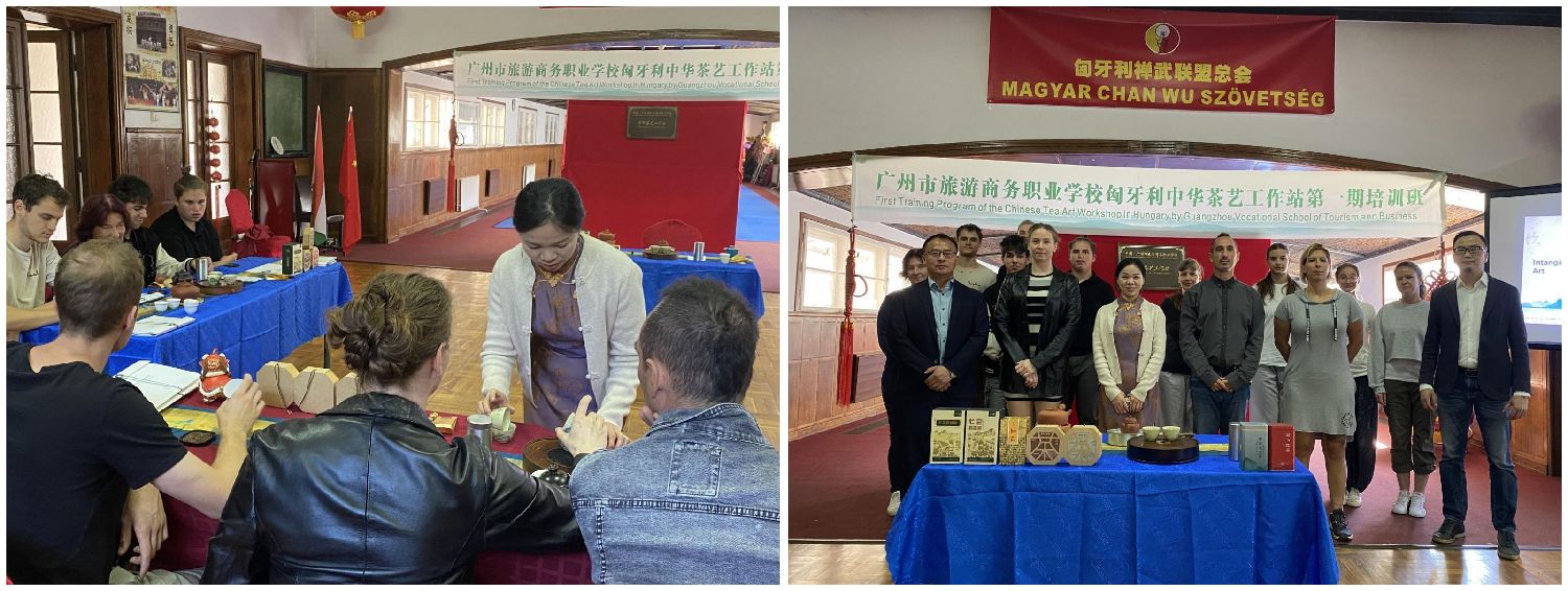 随后,广州市旅游商务职业学校在匈牙利禅武文化中心开展首期“中华茶艺工作站”培训班授课,介绍中国茶基本知识及非遗仿宋点茶技艺。