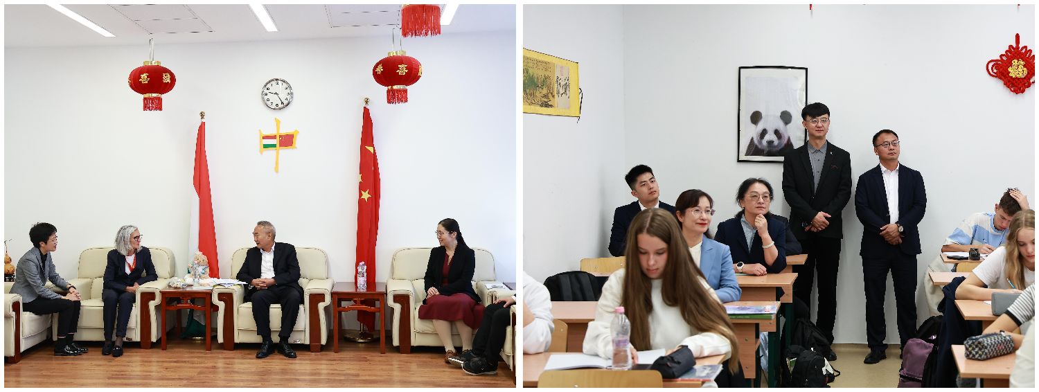 23日,代表团访问了象征匈牙利与中国两国深厚友谊的匈中双语学校,在校长Eldéj Szurnána(埃尔代伊·苏珊娜)的带领下参观了校园环境、观摩课堂并进行了座谈交流。