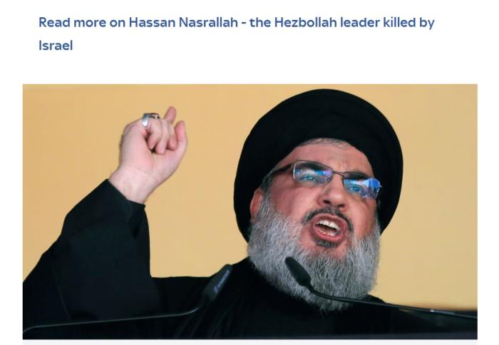 2024年9月28日,以军宣布,在以战机向黎巴嫩的四栋公寓楼投下80多枚炸弹后,最终将纳斯鲁拉击毙。