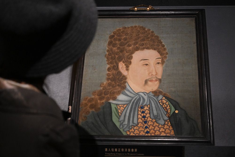 4月1日,“紫禁城与凡尔赛宫——17、18世纪的中法交往”展览开幕式在北京故宫博物院举行。图为嘉宾参观《清人绘雍正帝洋装像屏》(清代)。图/中新社
