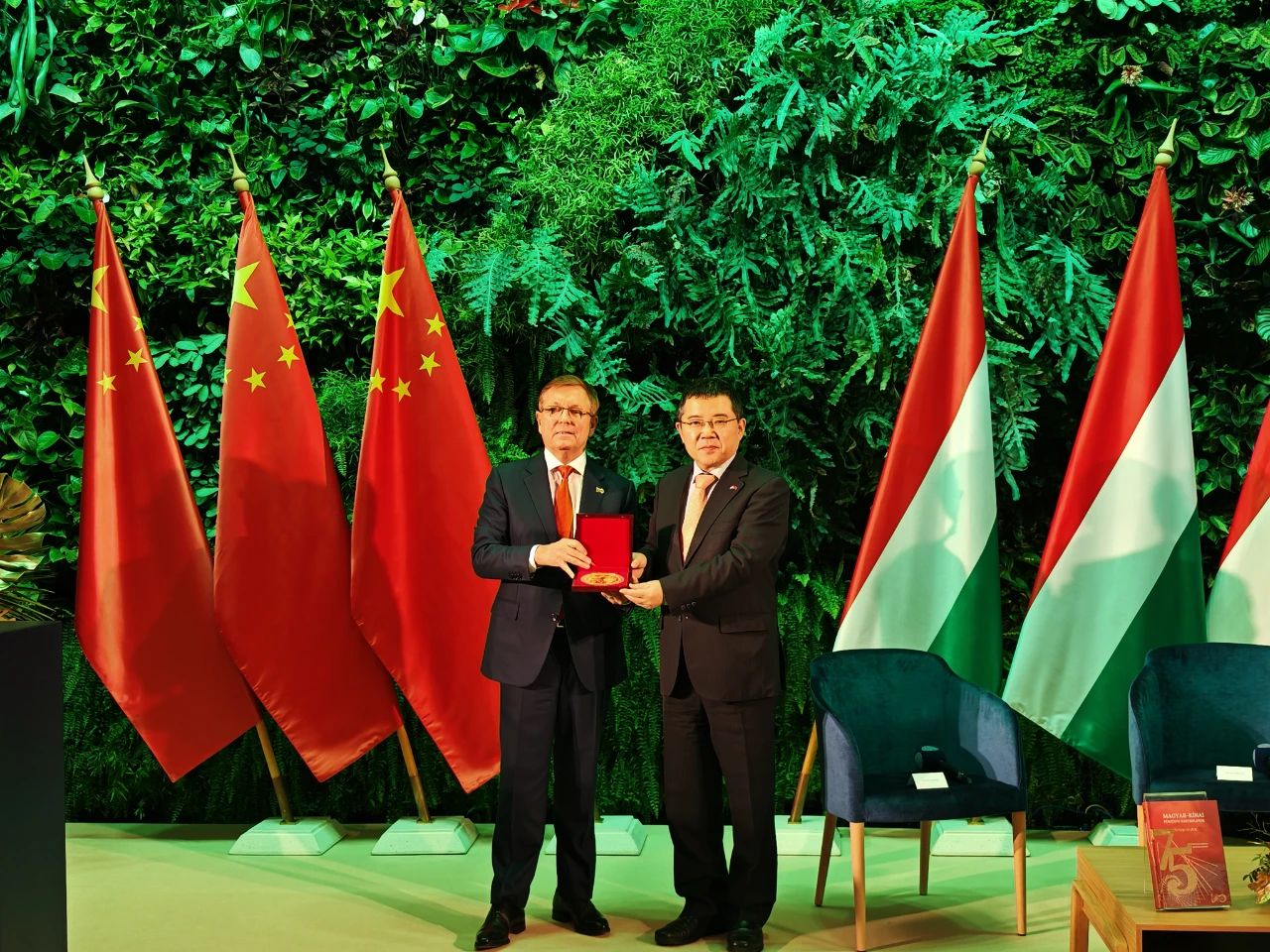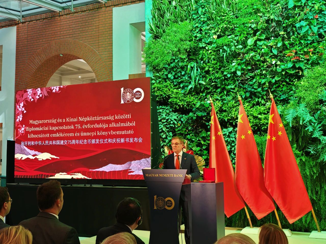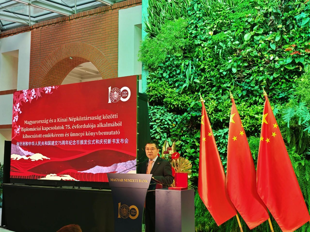2024年10月29日,匈牙利央行举办庆祝匈中建交75周年活动。中国驻匈牙利大使龚韬、匈央行行长马托尔奇出席并致辞。匈央行副行长坎德拉奇、国际事务行政主任霍尔瓦特及在匈中方金融、文化机构代表等近150人参加活动。