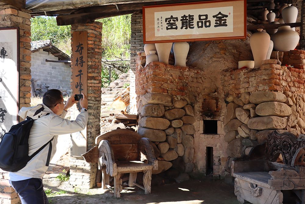 11月8日,浙江龙泉溪头村,游客打卡古龙窑。图/中新社