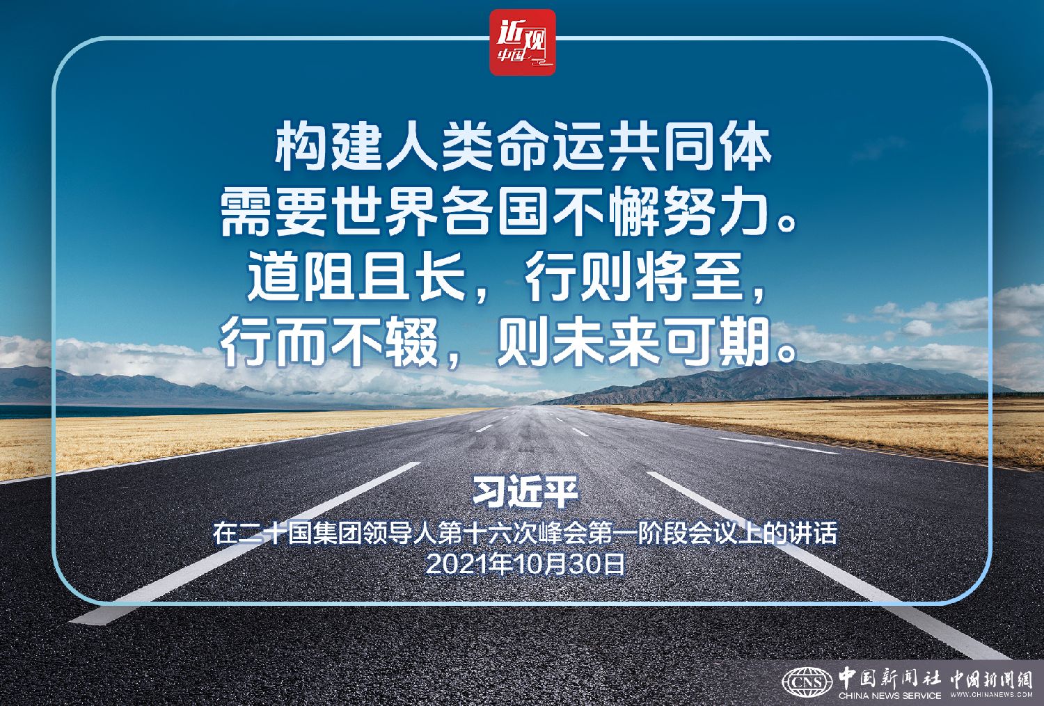 习近平强调,构建人类命运共同体需要世界各国不懈努力。道阻且长,行则将至,行而不辍,则未来可期。让我们团结起来,早日驱散疫情阴霾,携手共建更加美好的未来。