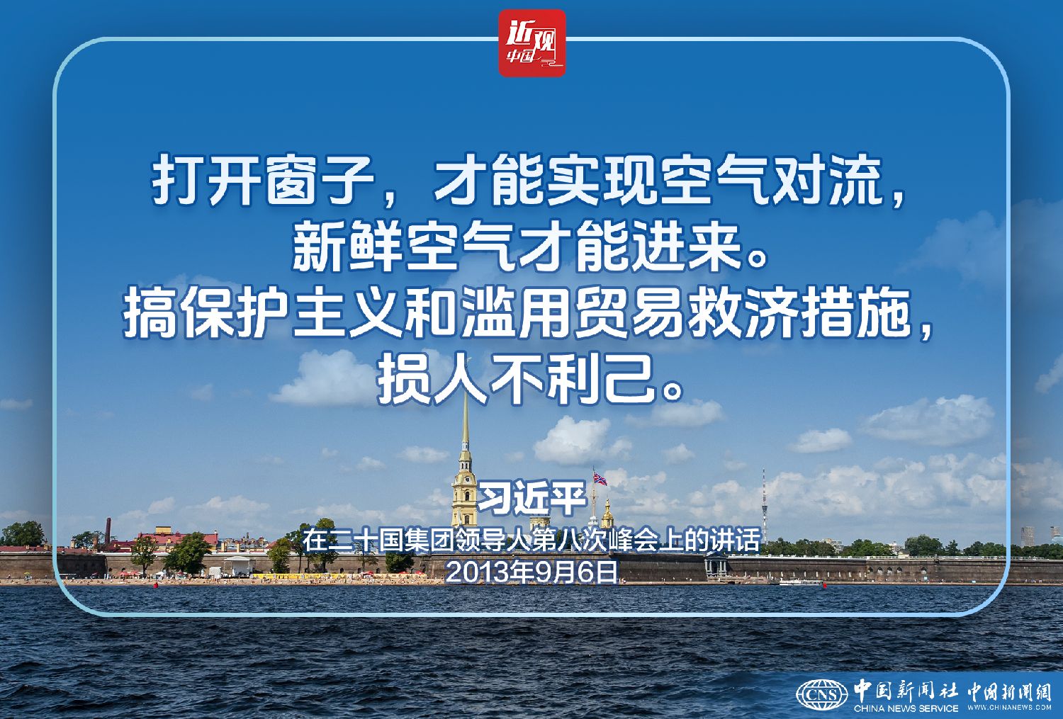 2013年9月6日,二十国集团领导人第八次峰会在俄罗斯圣彼得堡继续举行,中国国家主席习近平出席,就贸易等议题发表讲话。