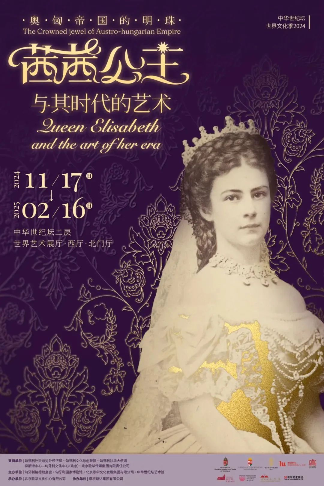 11月16日,由匈牙利格德勒皇宫、匈牙利国家博物馆、北京歌华文化发展集团有限公司、中华世纪坛艺术馆共同主办,摩根斯达集团协办的“奥匈帝国的明珠——茜茜公主与其时代的艺术”展览在中华世纪坛隆重开幕。
