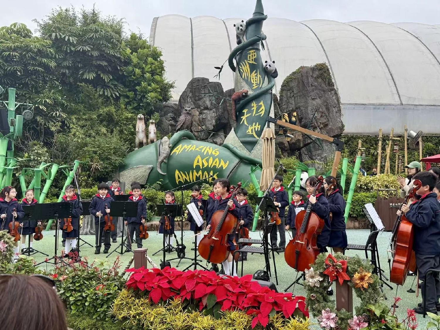 12月24日,香港海洋公园内布置的圣诞主题装饰。图/中新社