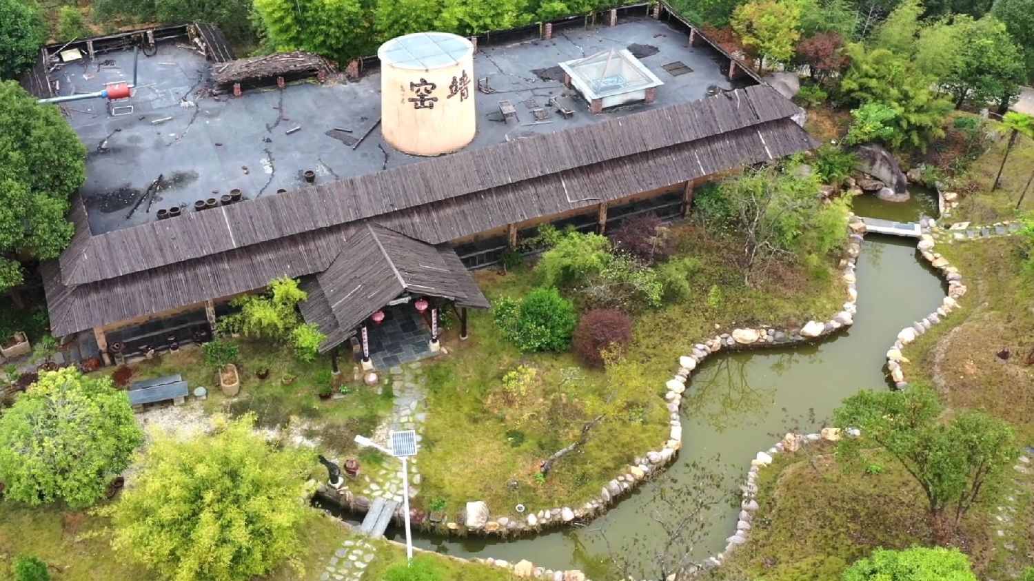 驱车从江西靖安县城一路向南,沿蜿蜒曲折的乡道行驶半个小时,一排传统古朴的建筑映入眼帘,房屋上一个大大的烟囱造型上,写着“靖窑”两字。