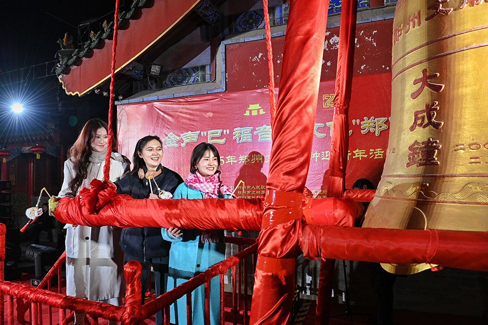 北京时间1月1日零时,河南郑州文庙大成钟如约鸣响,人们接力撞钟祈福,迎接2025年的到来。在这座有着1900多年历史的文庙里跨年,已成为很多郑州市民迎接新年的方式。