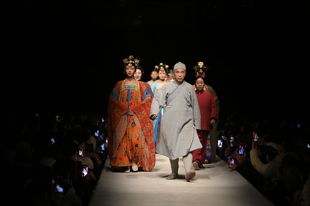 2025年1月9日晚,在甘肃敦煌大型室内情景体验剧《又见敦煌》剧场内,游人在行走中观看演出。图/中新社