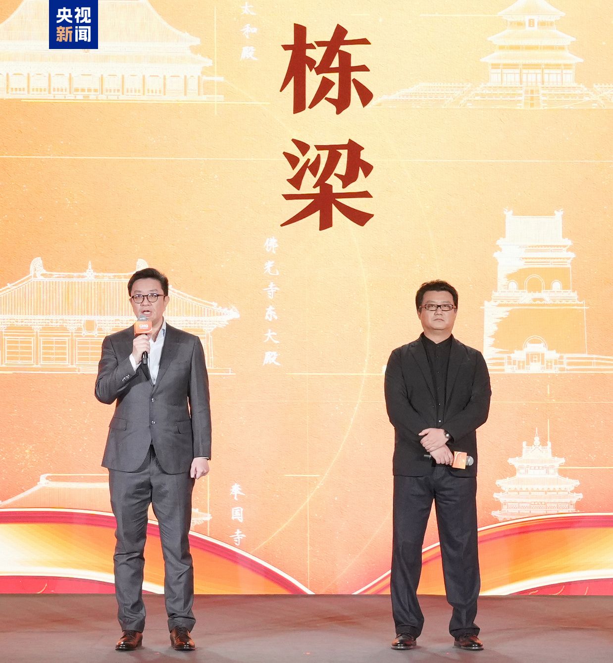 △中央美术学院教授、建筑学院副院长崔冬晖,天津大学教授、建筑学院常务副院长张昕楠推介中国传统建筑创演秀《栋梁》