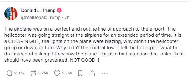 他在社交媒体上发问,“为什么直升机不上升或下降,也不转弯。为什么机场塔台不告诉直升机该怎么做,而是问他们是不是看到客机。”