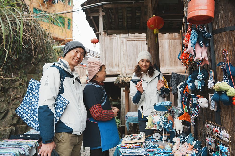 2024年12月29日,游客在贵州大利侗寨挑选旅游商品。图/中新社