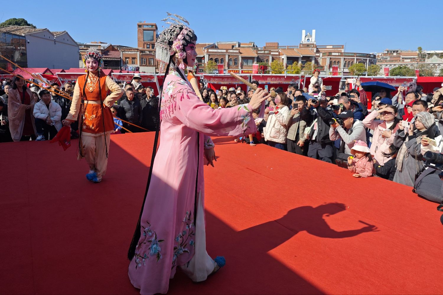 1月31日,泉州天后宫广场正在进行非遗表演。图/中新社