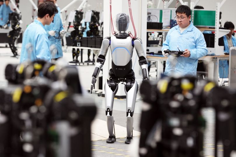 走进上海首座人形机器人量产地——智元机器人制造工厂,仿佛步入未来世界:工程师正将人形机器人的各类配件按序组装,数百台“初出茅庐”的人形机器人排列整齐,等待在工程师的“带领”下完成一系列动作测试。