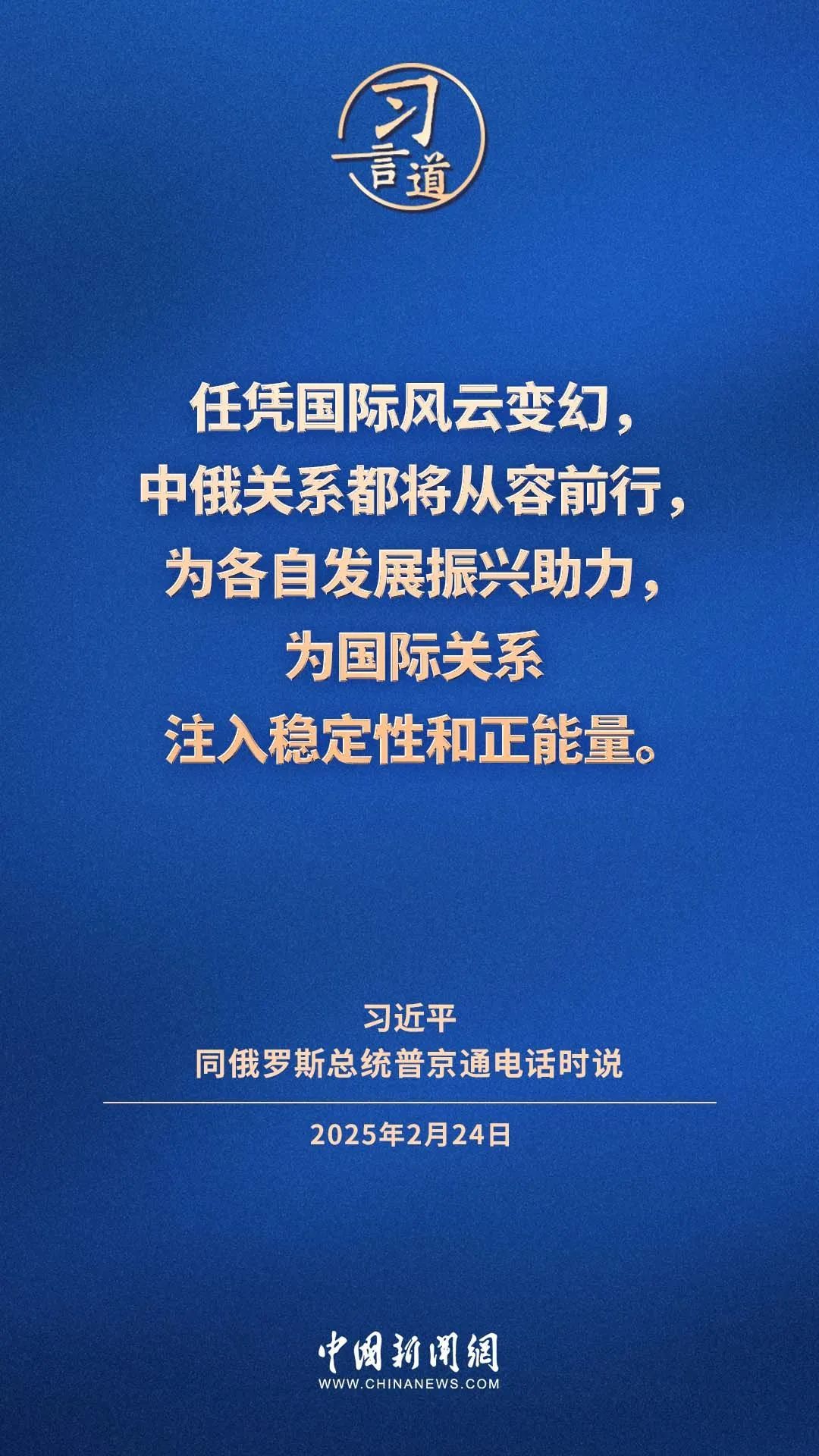 2月24日下午,国家主席习近平应约同俄罗斯总统普京通电话。习近平主席强调——