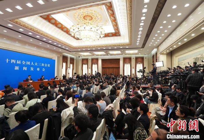3月4日,十四届全国人大三次会议在北京人民大会堂举行新闻发布会。大会发言人娄勤俭就大会议程和人大工作相关问题回答中外记者提问。 中新社记者王紫儒摄