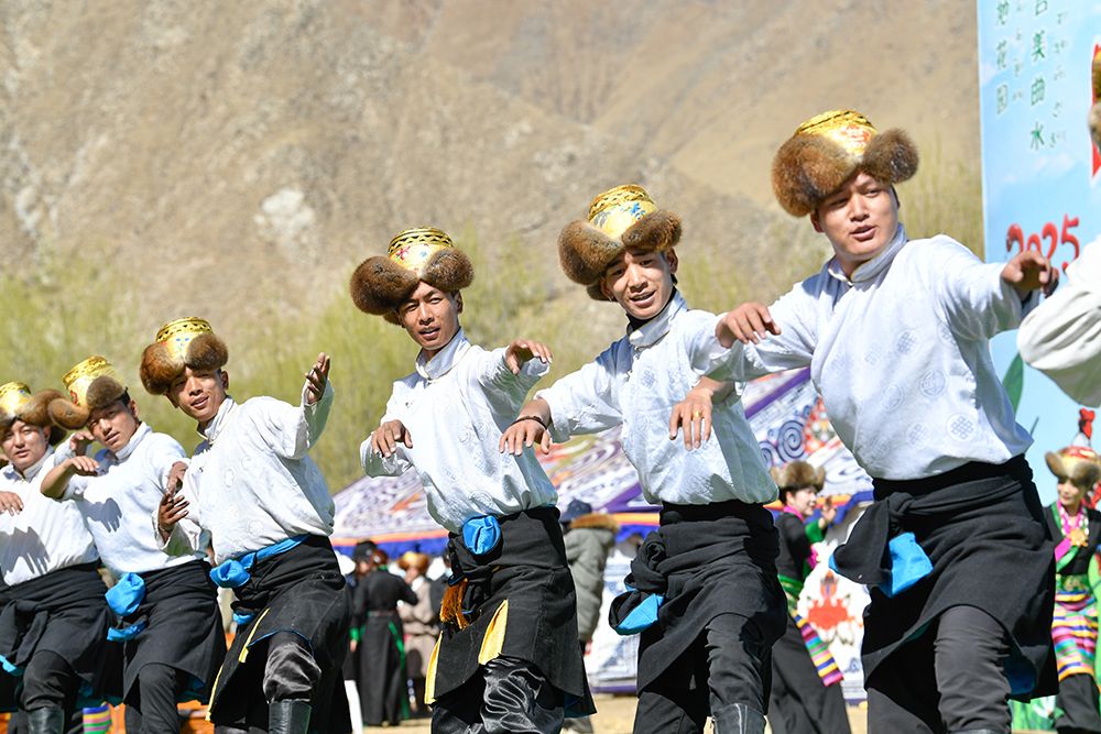 3月16日,在西藏自治区拉萨市曲水县,人们载歌载舞庆祝春耕开耕。图/中新社