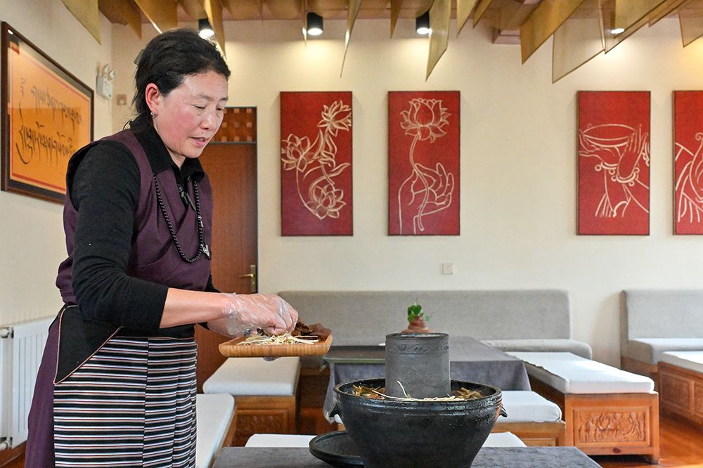 3月2日,益西卓玛制作藏式火锅。图/中新社