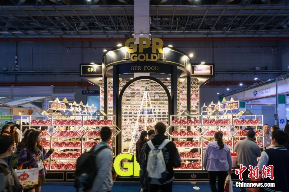 资料图:2024年11月9日,上海第七届中国国际进口博览会食品及农产品展区内,马来西亚GPR曲奇饼干展台吸引观众。中新社记者贾天勇摄