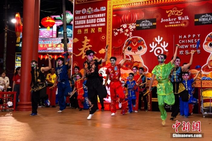 资料图:当地时间2月12日晚,在马来西亚马六甲元宵庆祝活动上,马六甲英歌舞队上演首秀。这支英歌舞队是在广东普宁的协助下,由马六甲武术龙狮总会成立的。图为队员们在表演中。中新社记者陈悦摄