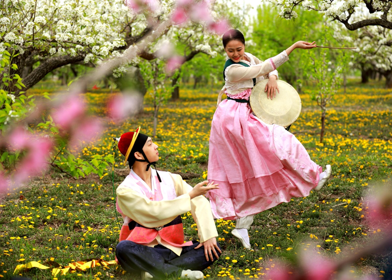 在吉林延边的梨园深处感受朝鲜族风情。图/马景峰 摄