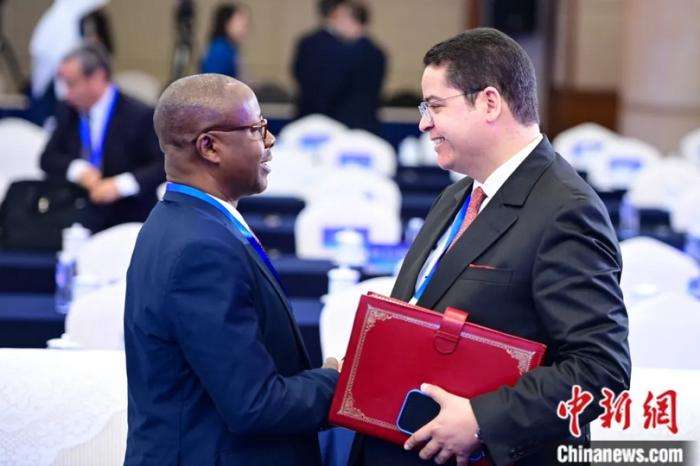 2023年12月5日,“纪念《世界人权宣言》发表75周年”国际研讨会在北京举行。图为与会嘉宾在会后交流。图/中新社