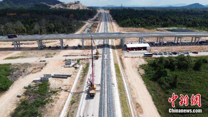 当地时间2024年5月9日,马来西亚东海岸铁路四电系统工程开工仪式在登嘉楼州举行。图为施工现场。图/中新社