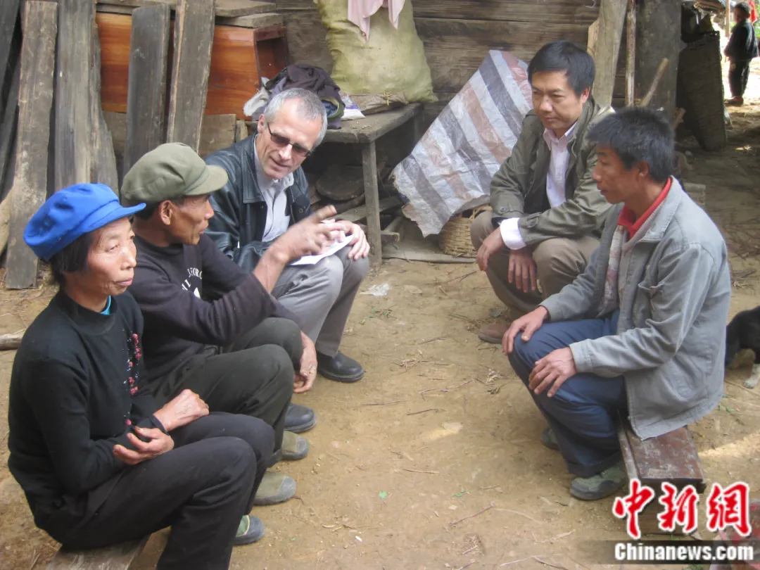 2008年12月,迈克尔·海尔曼(左三)在云南省怒江傈僳族自治州调研。图/中新网