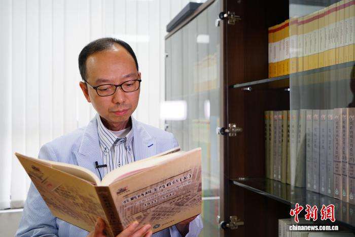 7月24日,澳门理工大学人文及社会科学学院院长、澳门口述历史协会会长林发钦翻阅《抗战时期澳门日志(上)》。 中新社记者郑嘉伟摄