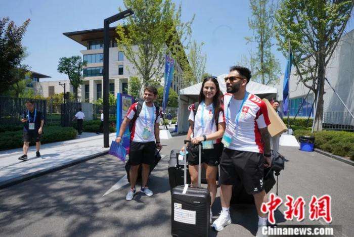 8月3日,2025年第12届世界运动会运动员村正式开村。图为运动员进村入住。图/中新社