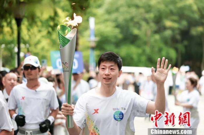 7月26日,成都世运会举行火炬传递,这是世运会历史上首次举行火炬传递。乒乓球奥运冠军马龙是火炬手之一。图/中新社