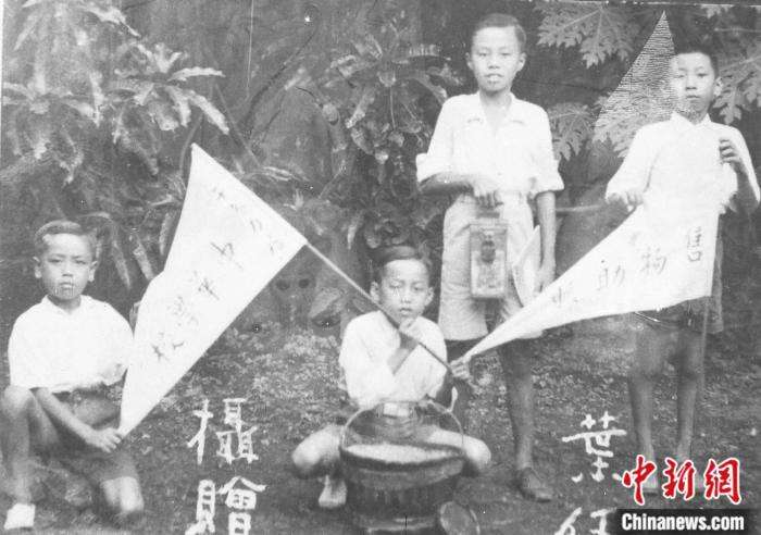 印尼东爪哇多隆亚公中华学校学生于二战期间沿街义售,支援抗战。华侨博物院供图