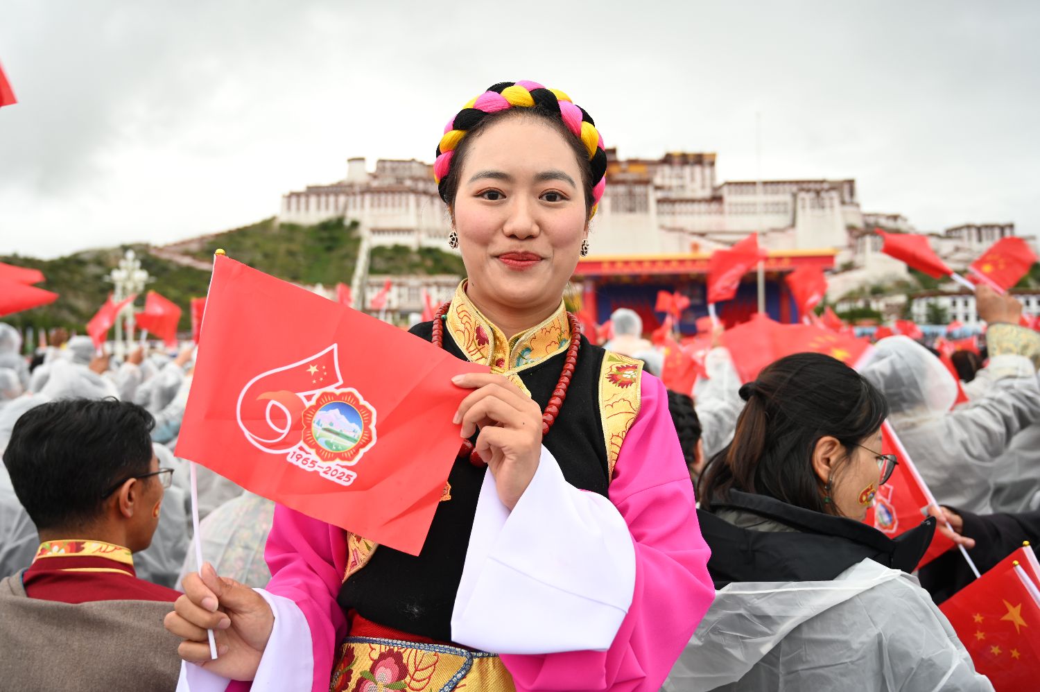 8月21日,青年律师次仁卓玛在布达拉宫广场参加庆祝活动。图/中新社