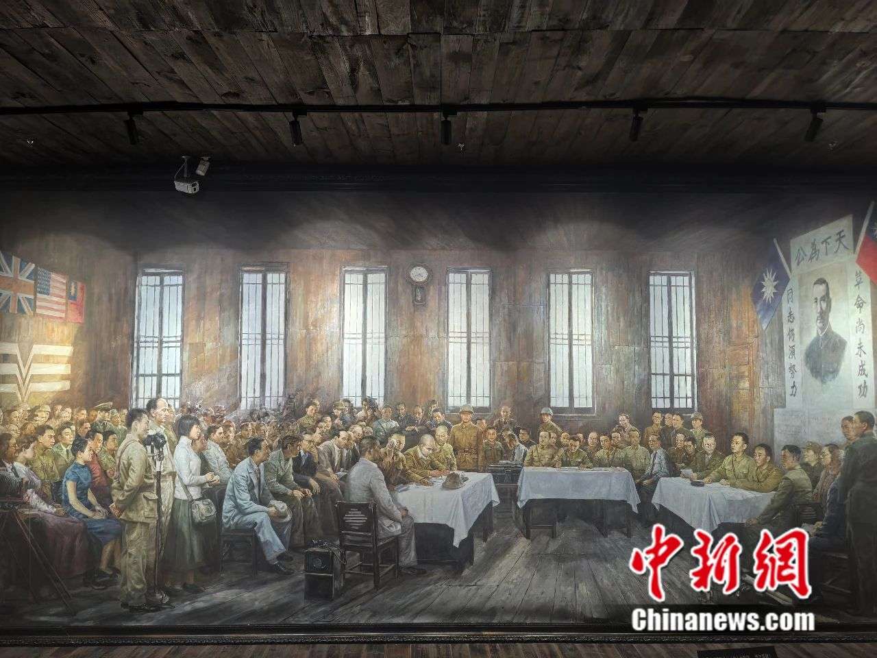 墙上的油画生动还原了80年前芷江受降场景