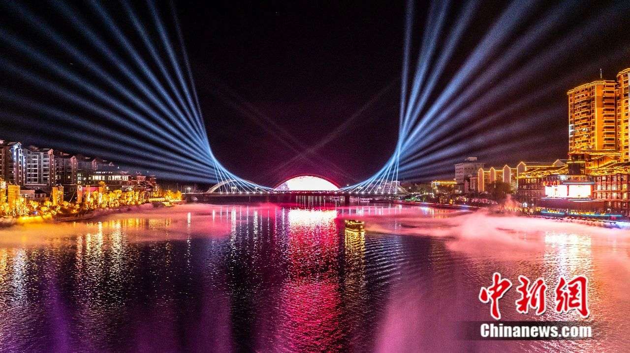 和平湖夜游灯光秀。芷江县委宣传部供图