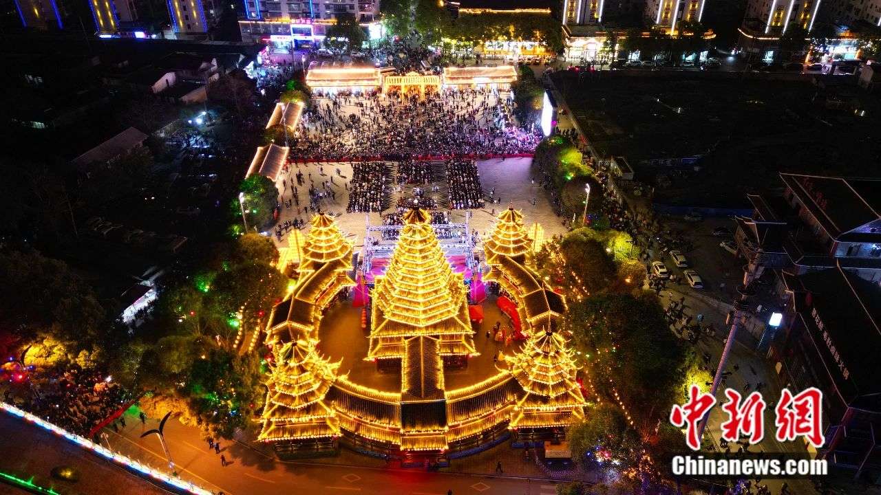 整体呈现“圆宝护鼓楼”的侗族文化意象
